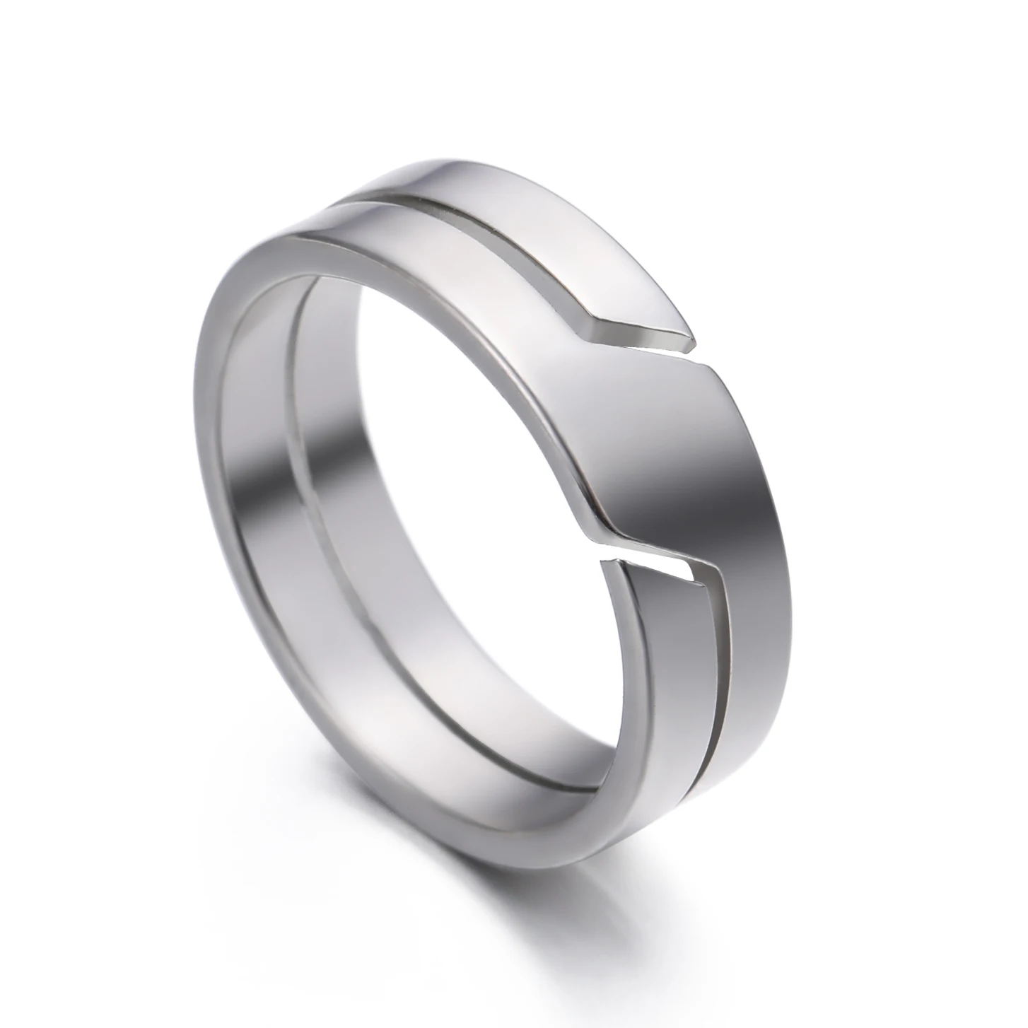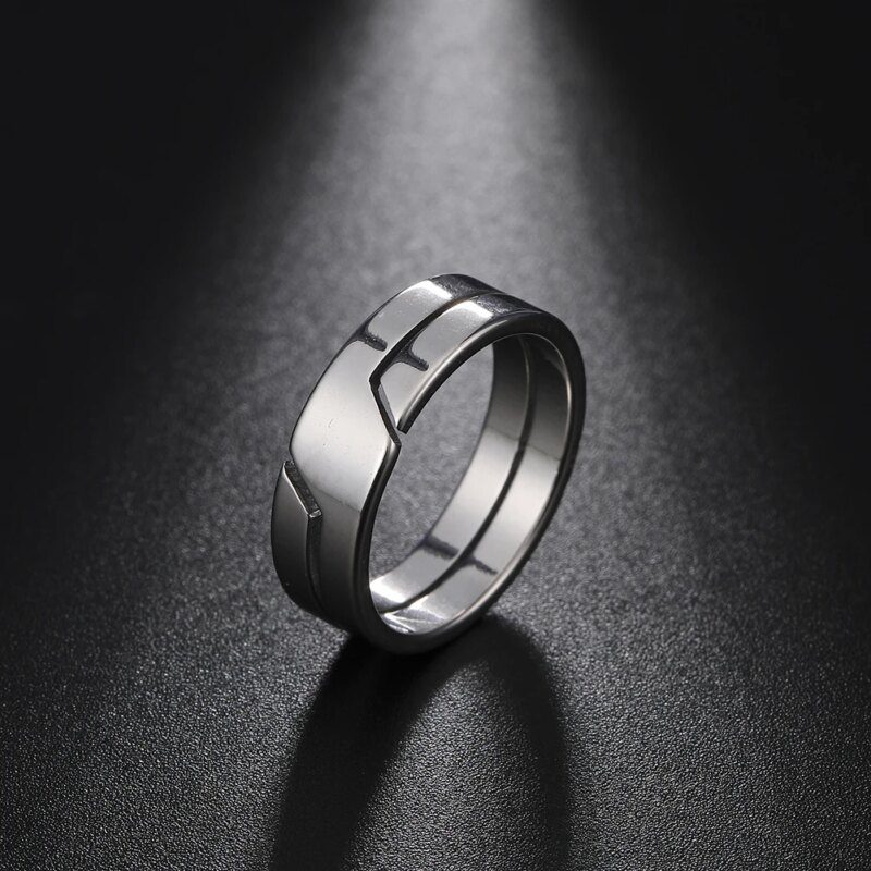 Ten precyzyjnie wykonany pierścionek został wykonany z wysokiej jakości stali nierdzewnej. Gwarantuje niezawodną trwałość, odporność na codzienne zużycie i domyślnie nie utlenia się, jest równie przyjemny w noszeniu. Jego ergonomiczna konstrukcja zapewnia idealne dopasowanie, łącząc gładką powierzchnię z geometrycznym kształtem. Jest wytrzymały, lekki i wygodny, a także doskonale komponuje się ze strojem, dodając mu subtelnego charakteru.