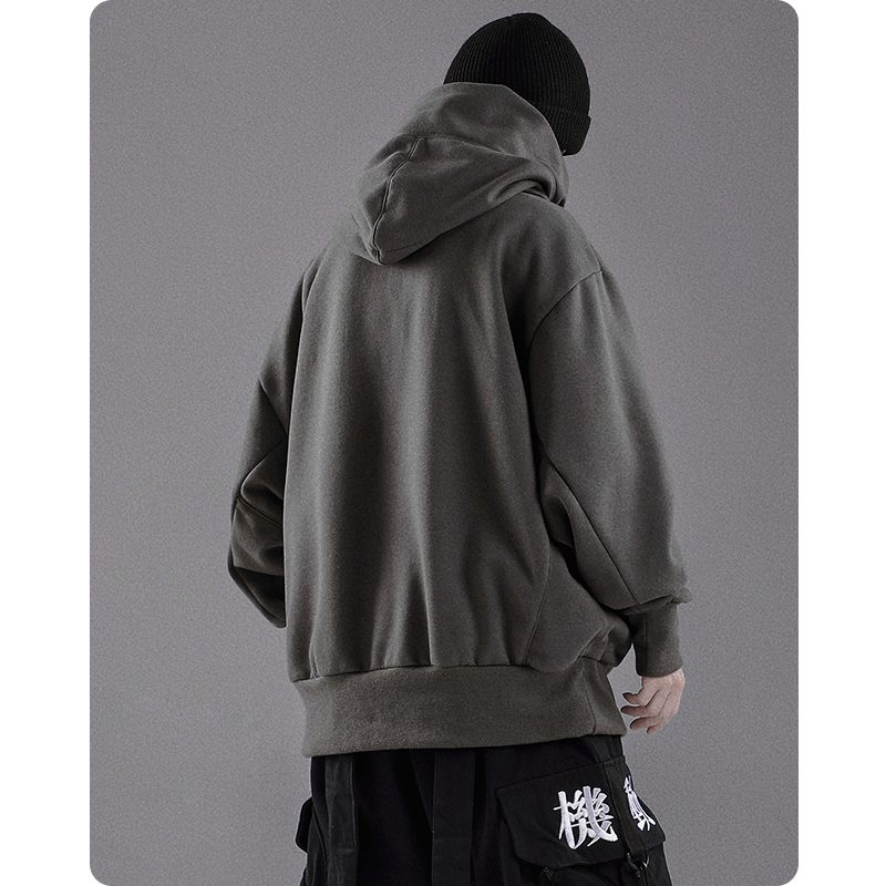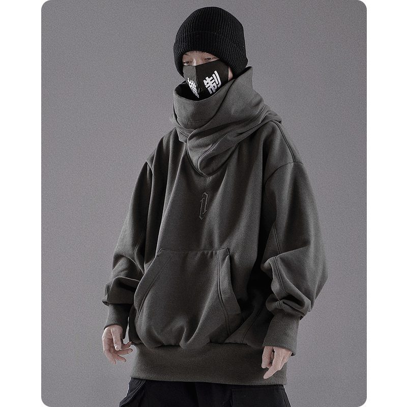 Ta bluza z kapturem techwear jest idealna na chłodniejsze pory roku dzięki swojej grubości. Kaptur chroni przed żywiołami i utrzymuje ciepło. Sweter opada do talii, zapewniając wygodę i ciepło, a luźny krój zapewnia niezrównaną swobodę ruchów.