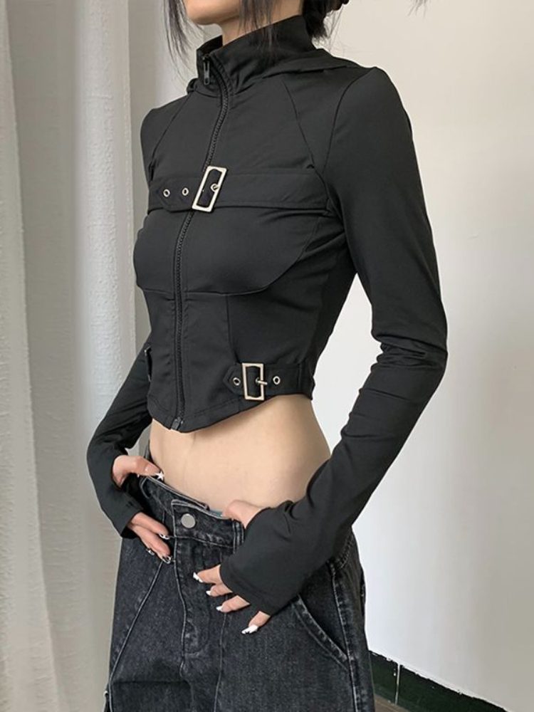 Ta koszulka techwear damska z długim rękawem jest inspirowana stylem techwear i cyberpunk. Wykonany z wysokiej jakości poliestru, jest miękki w dotyku i odporny na ścieranie. Długie, wąskie rękawy podkreślają sylwetkę tego topu. Zamki błyskawiczne i paski dodają estetyki techwear dzięki swojej użyteczności i wzornictwu.