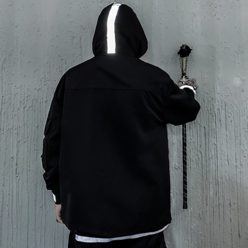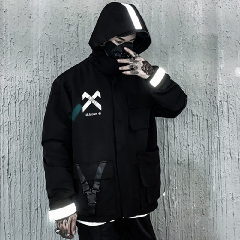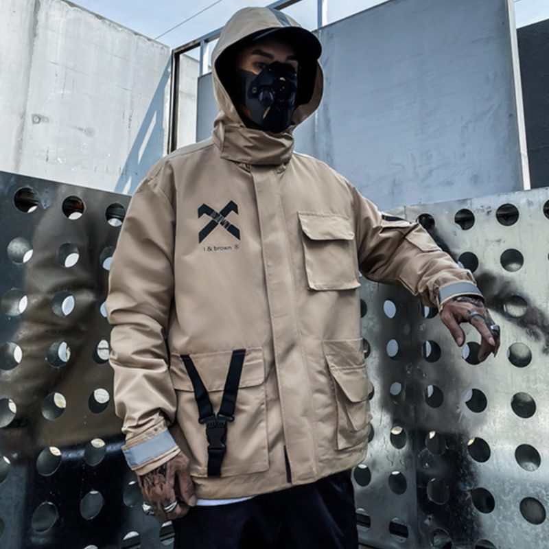 Design tej kurtki z kapturem jest typowy dla estetyki hip-hopu i Techwear. Możesz wybrać między czarnym i beżowym kolorem, aby uzupełnić swój wygląd. Odblaskowe paski na kurtce dodają jej nowoczesności, a jednocześnie są praktyczne, jeśli jesteś poza domem w nocy.