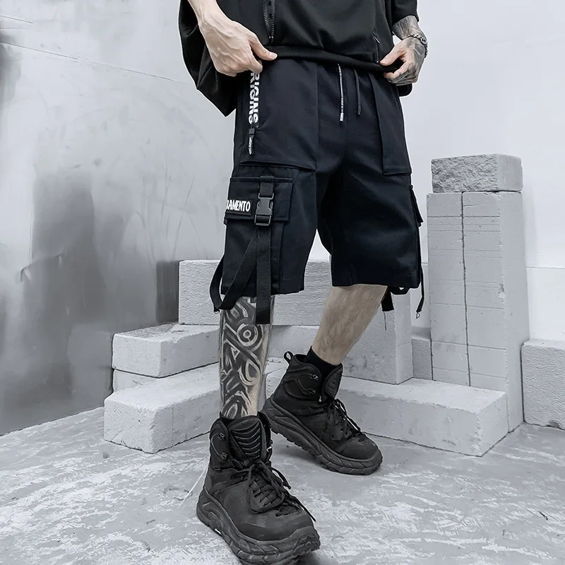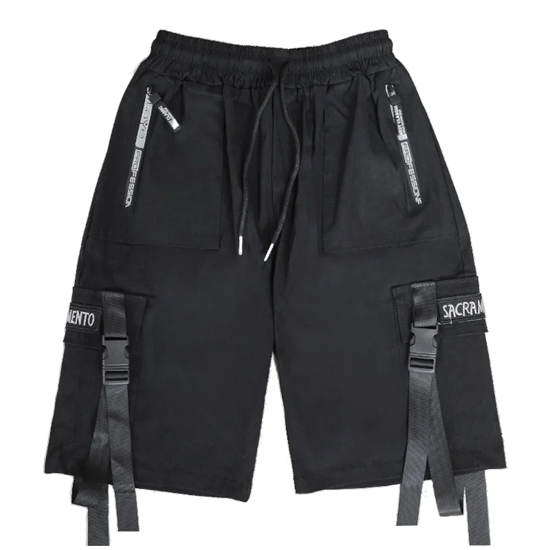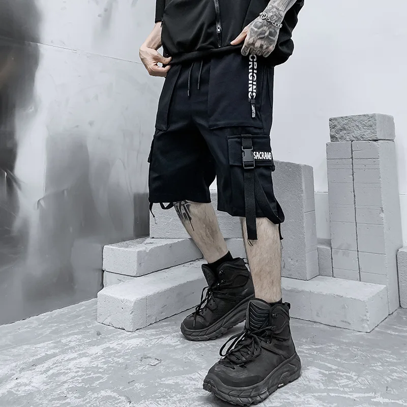 Te spodenki techwear o szerokim kroju łączą design i swobodę ruchów. Napis inspirowany modą streetwear jest ukłonem w stronę japońskiej i koreańskiej mody miejskiej.