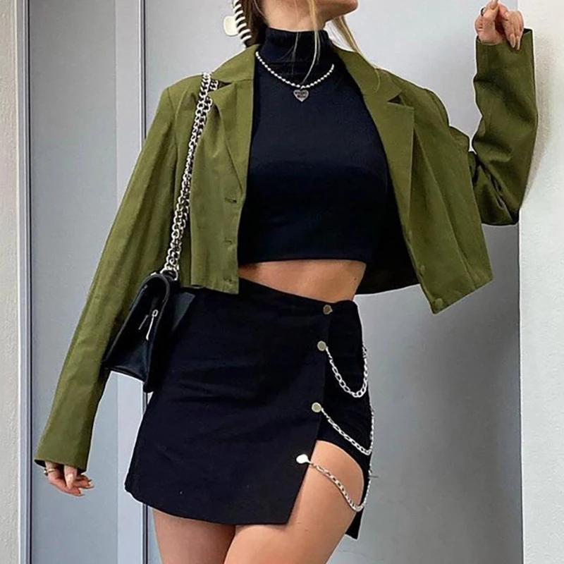 Wykonana z wysokiej jakości poliestru spódnica z łańcuszkiem jest miękka w noszeniu, wygodna i oddychająca. Smukła sylwetka podkreśla kształt ciała, a łańcuszek dodaje buntowniczego, efektownego i techwear akcentu do zestawu.