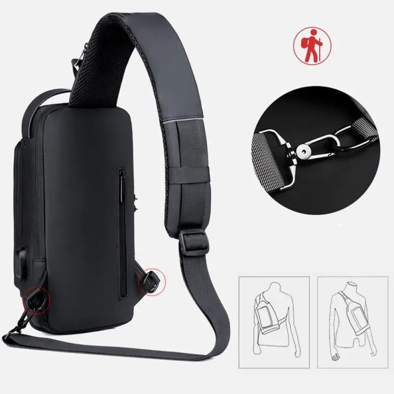 Główną cechą tej torby na klatkę piersiową techwear jest to, że jej główna kieszeń jest wyposażona w system antykradzieżowy. Zewnętrzne złącze USB ułatwia ładowanie telefonu bez konieczności noszenia ze sobą nieporęcznej ładowarki zewnętrznej.
